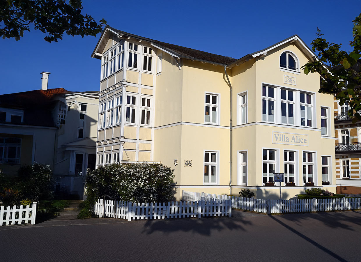 Das sich seit vier Generationen im Familienbesitz befindende Feriendomizil besteht aus den drei Strandvillen „Alice“, „Marianne“ und „Lisbeth“. Außen und innen aufwändig saniert, gehören sie heute zu den historischen Kostbarkeiten der Bäderarchitektur.